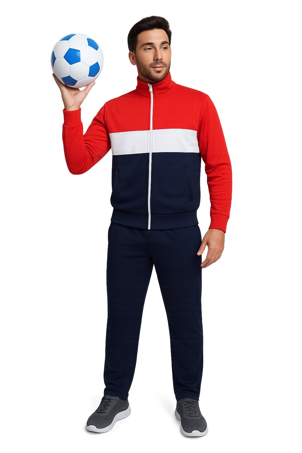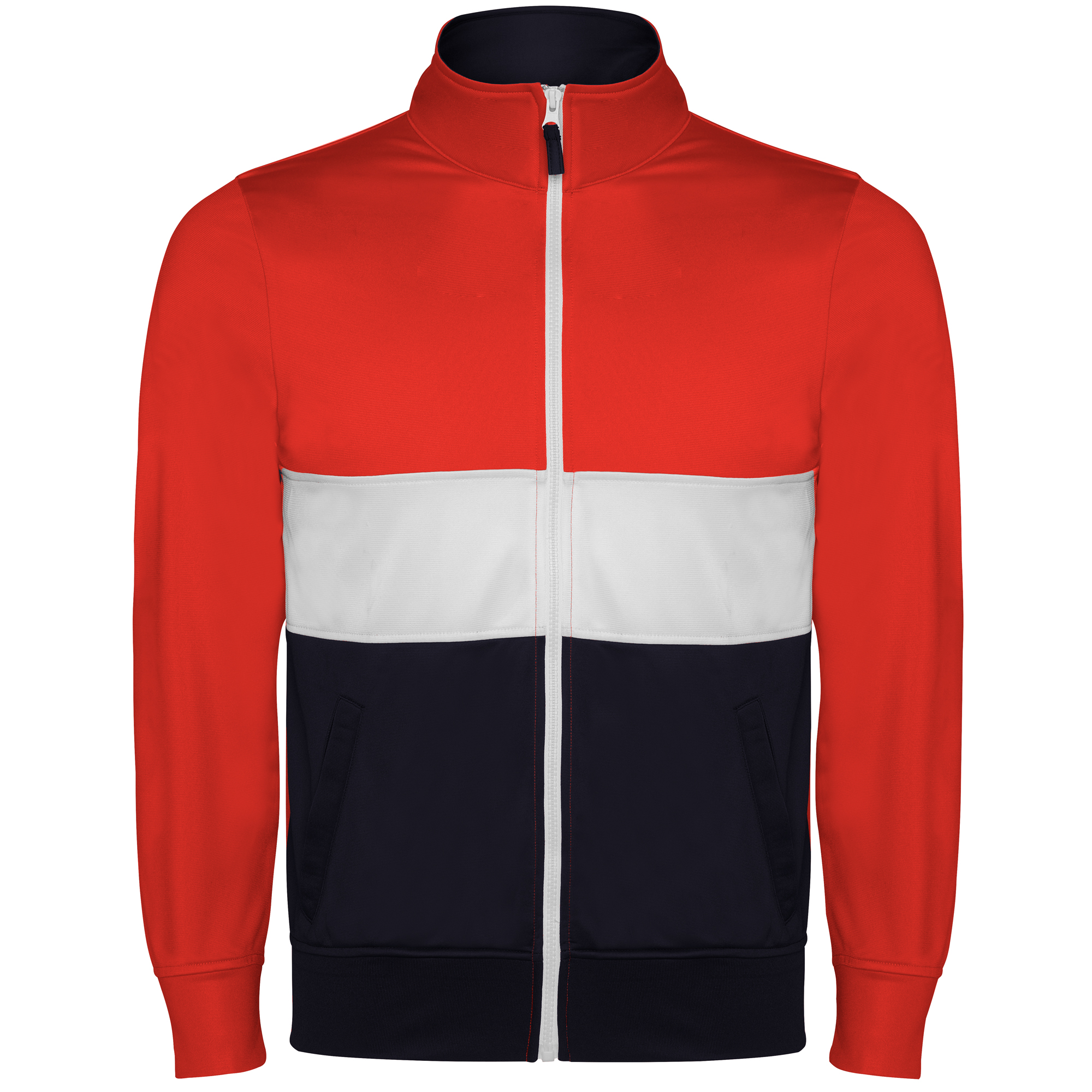 Trening ATHENAS combinat sacou și pantaloni trening. -Guler înalt. -Buzunare frontale cu șnur. -Manșete și talie din nervură 1×1. – Fermoar central cu fermoar cu acoperire interioară contrastantă a cusăturilor. -Pantaloni cu talie elastică și